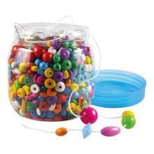 Bigjigs Toys Dřevěné navlékací korálky v dóze