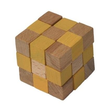 Dřevěný hlavolam kostka žlutá. Skvělá hra, která pomáhá rozvíjet strategickou mysl. Ideální pro interaktivní hraní. V nabídce je 8 barevných provedení s rozdílnými obtížnostmi seřazenými od nejlehčí po nejsložitější. Čím tmavší barvu hlavolam má, tím je složitější. Hlavní vlastnosti: podporuje logické myšlení a motorikuvyrobeno z kvalitního dřevaodpovídá současným evropským bezpečnostním normám