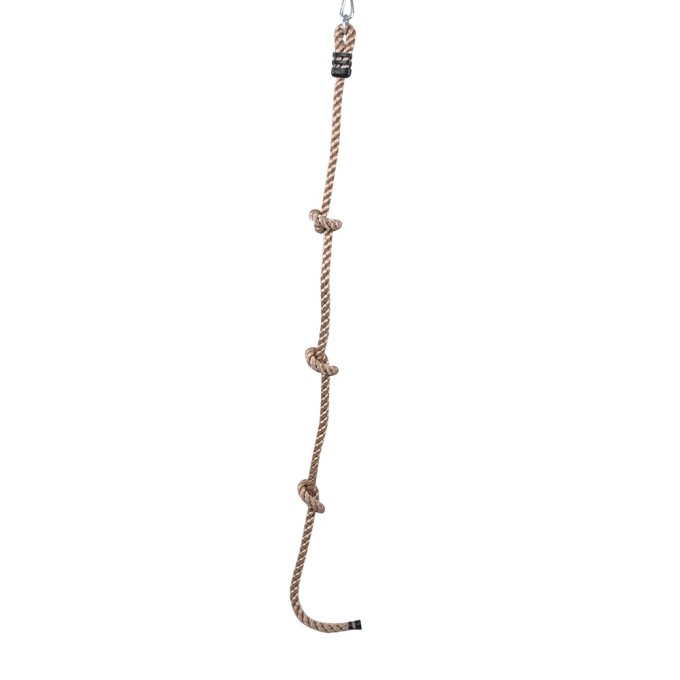 Dětské šplhací lano s uzly.Nezbytný pomocník pro objevitele venkovní zábavy na dětském hřišti nebo k domečku na stromě. Hlavní vlastnosti: Nosnost: 100 kgDélka lana je 2 mPevné lano o tloušťce 26 mm