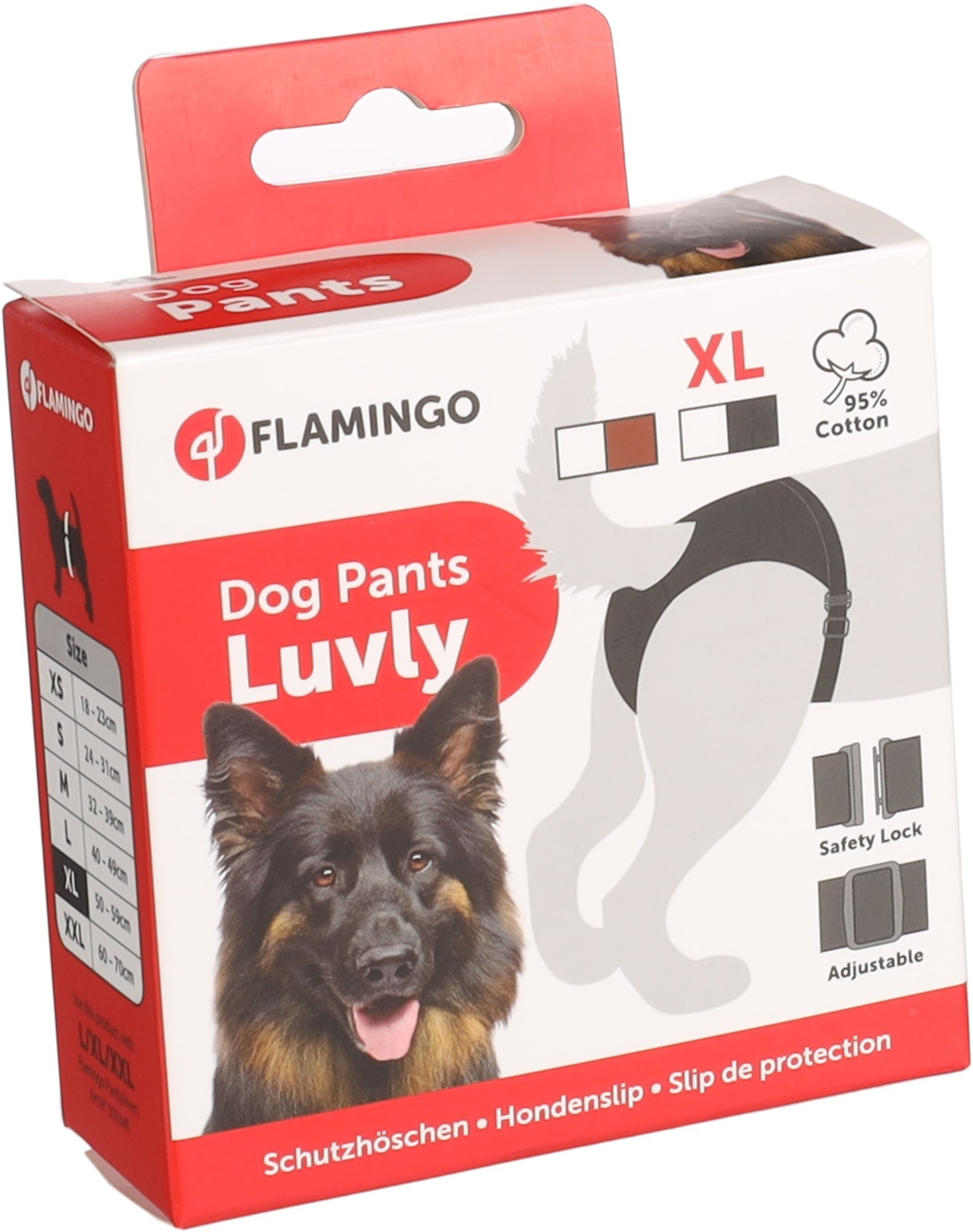Háracie nohavičky čierne sú prírodné a vyrobené v najvyššej kvalite. Nohavičky sú vyrobené z 95% bavlny a 5% elastánu. Výrobok je vysoko absorbčný a veľmi pohodlný na nosenie. Elastán prispieva k pružnosti a zachovaniu tvaru nohavičiek. Okrem toho majú vysoko flexibinú gumičku, ktorej dĺžka sa dá ľahko zdvojnásobiť bez toho, aby sa pes cítil obmedzene. Veľkosť XL, 50-59 cm