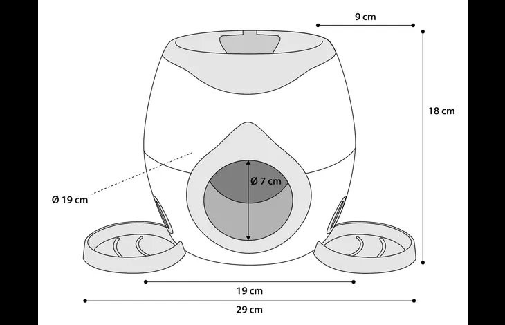 Dá sa naplniť granulami alebo maškrtami (maximálny priemer 12,5 mm)
