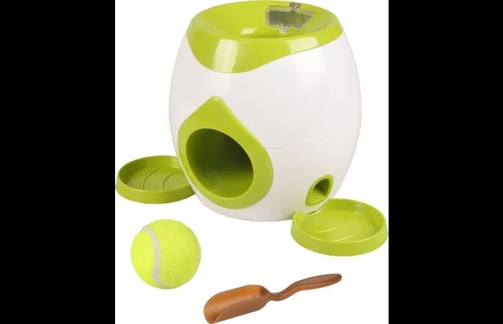 Múdra interaktívna hračka pre psy, ktorá sa bude hrať so psom a odmeňovať ho maškrtami! Je vhodná na maškrty s maximálnym priemerom 12,5 mm. Keď váš pes umiestni loptičku späť do automatu, okamžite sa mu odmení darčekmi. Interaktívna hračka nevyžaduje batérie. Tenisová loptička a lopatka sú v cene.