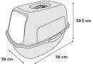 Recyklovateľná mačacia toaleta vyrobená z 98 % z recyklovaného plastu. Dodáva sa s vymeniteľným uhlíkovým filtrom, ktorý pohlcuje nepríjemné pachy. Jednoducho sa premiestňuje pomocou rukoväte a vďaka zaobleným rohom sa jednoducho čistí. Toaleta má odnímateľné veko s výklopnými dvierkami.
