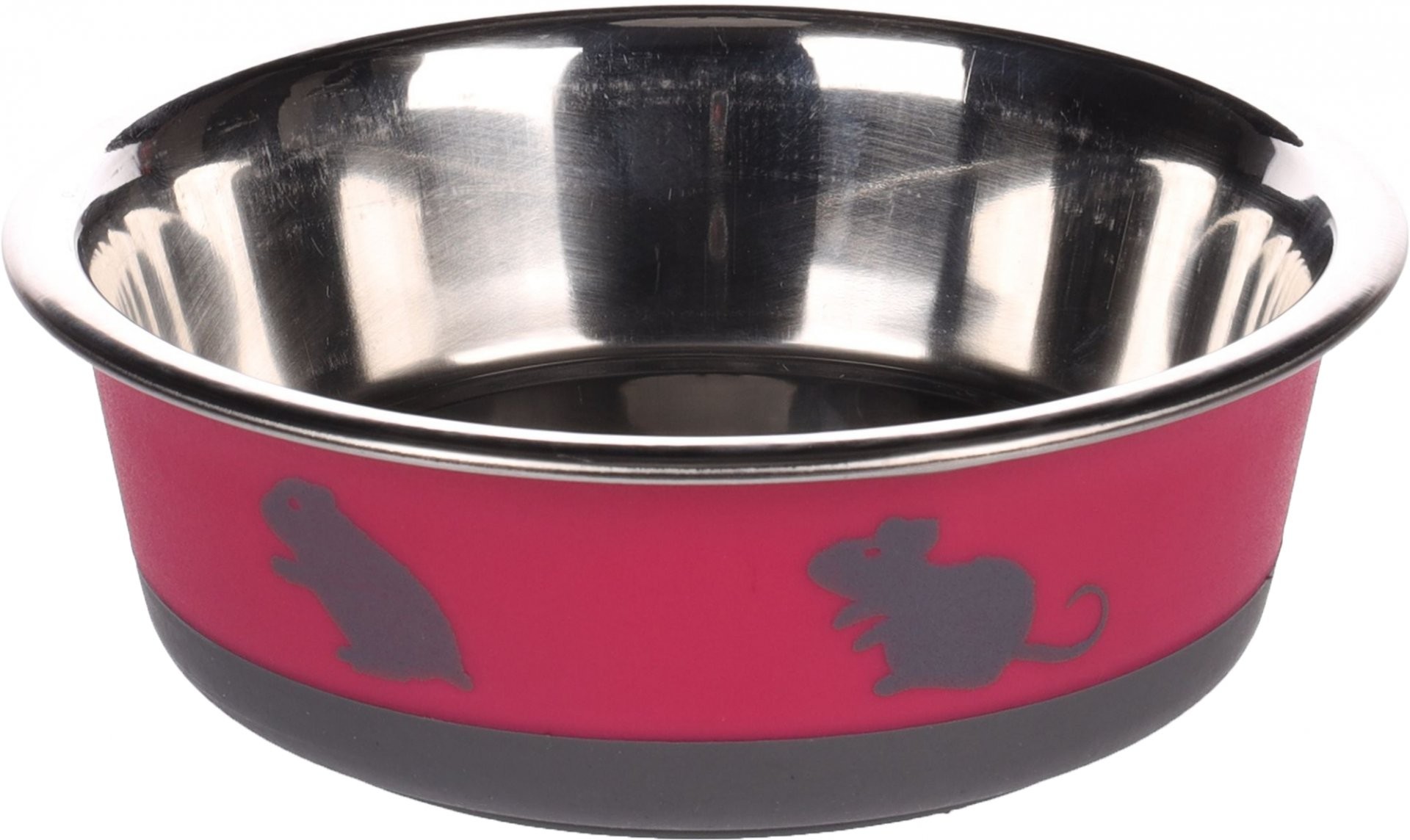 Pekná nerezová miska s plastovým opláštením ružovej farby. Objem misky 400ml. Priemer 14cm. Celý popis