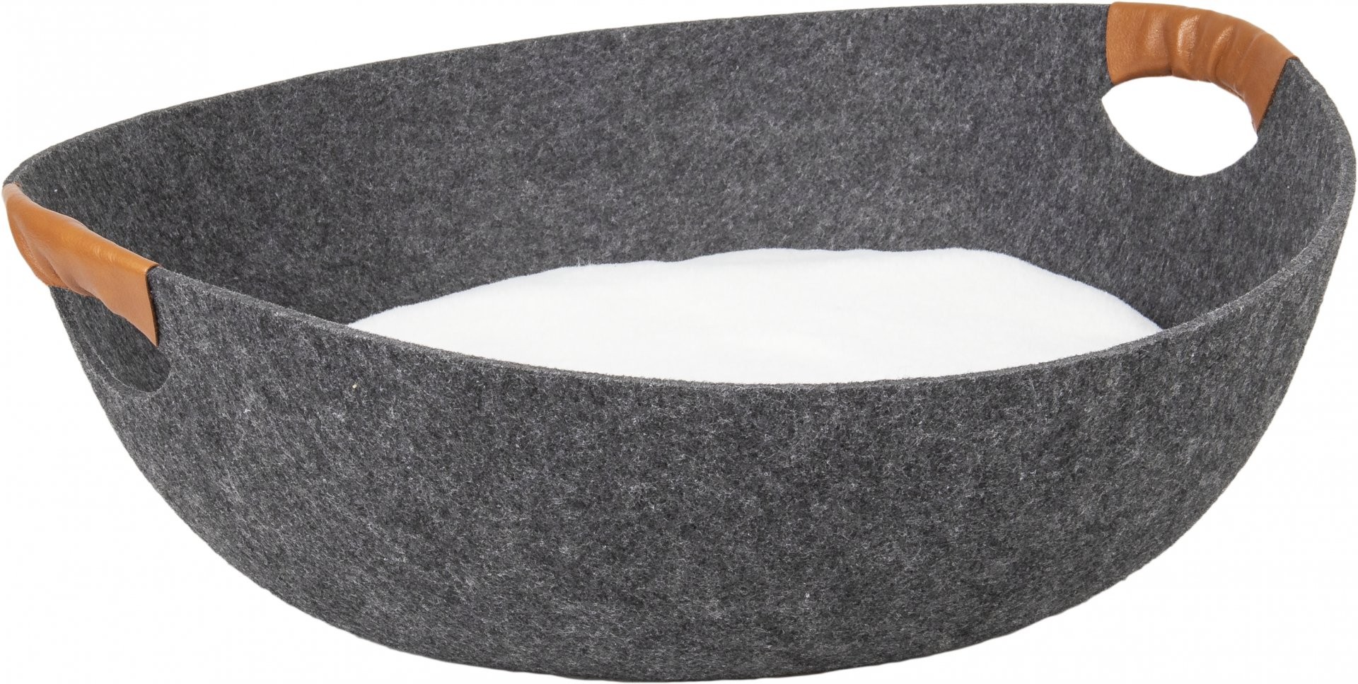 Prenosný peliešok pre mačky vyrobený z plsti sivej farby