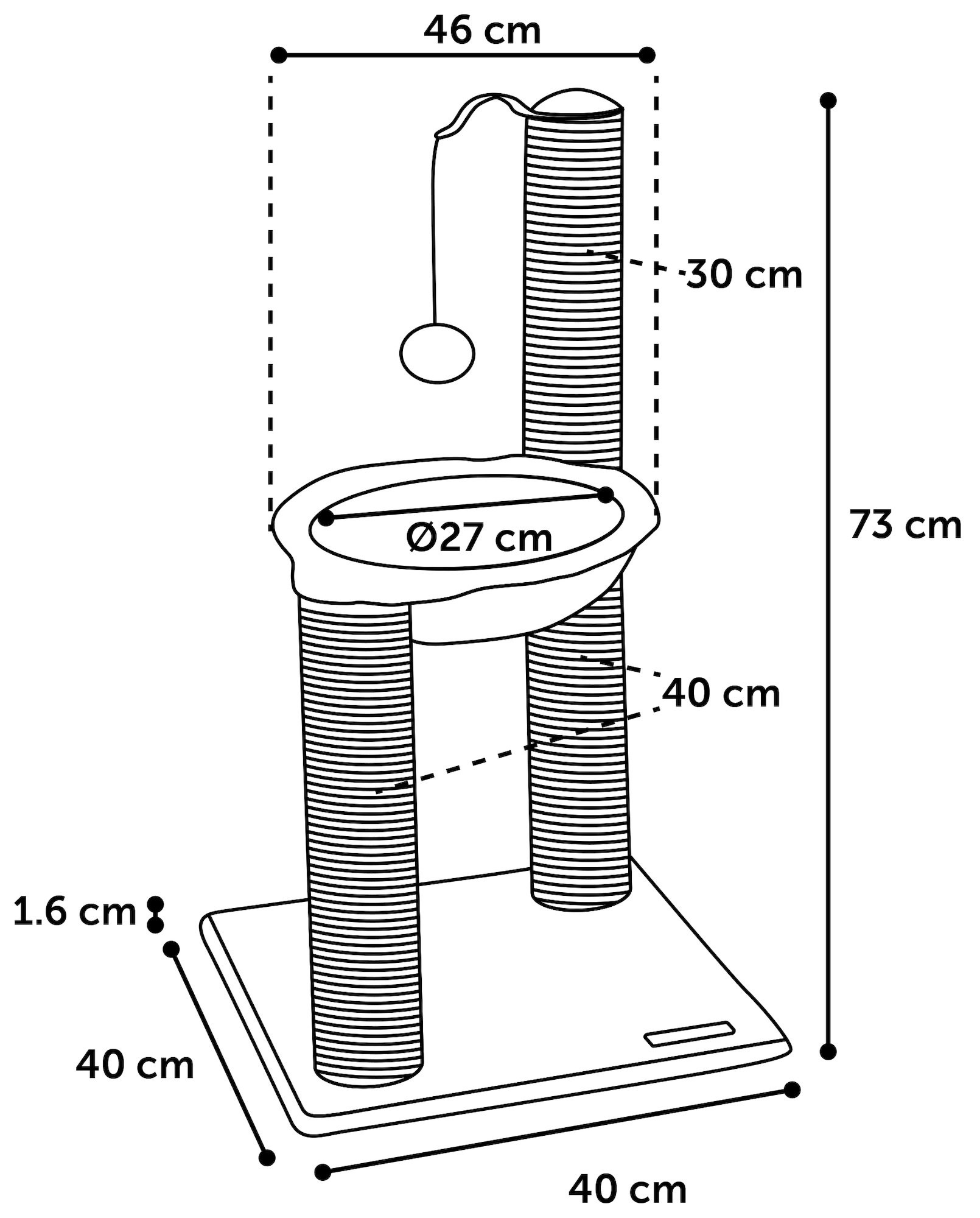 Škrabadlo pre mačky s hracou loptičkou a miestom na odpočinok.