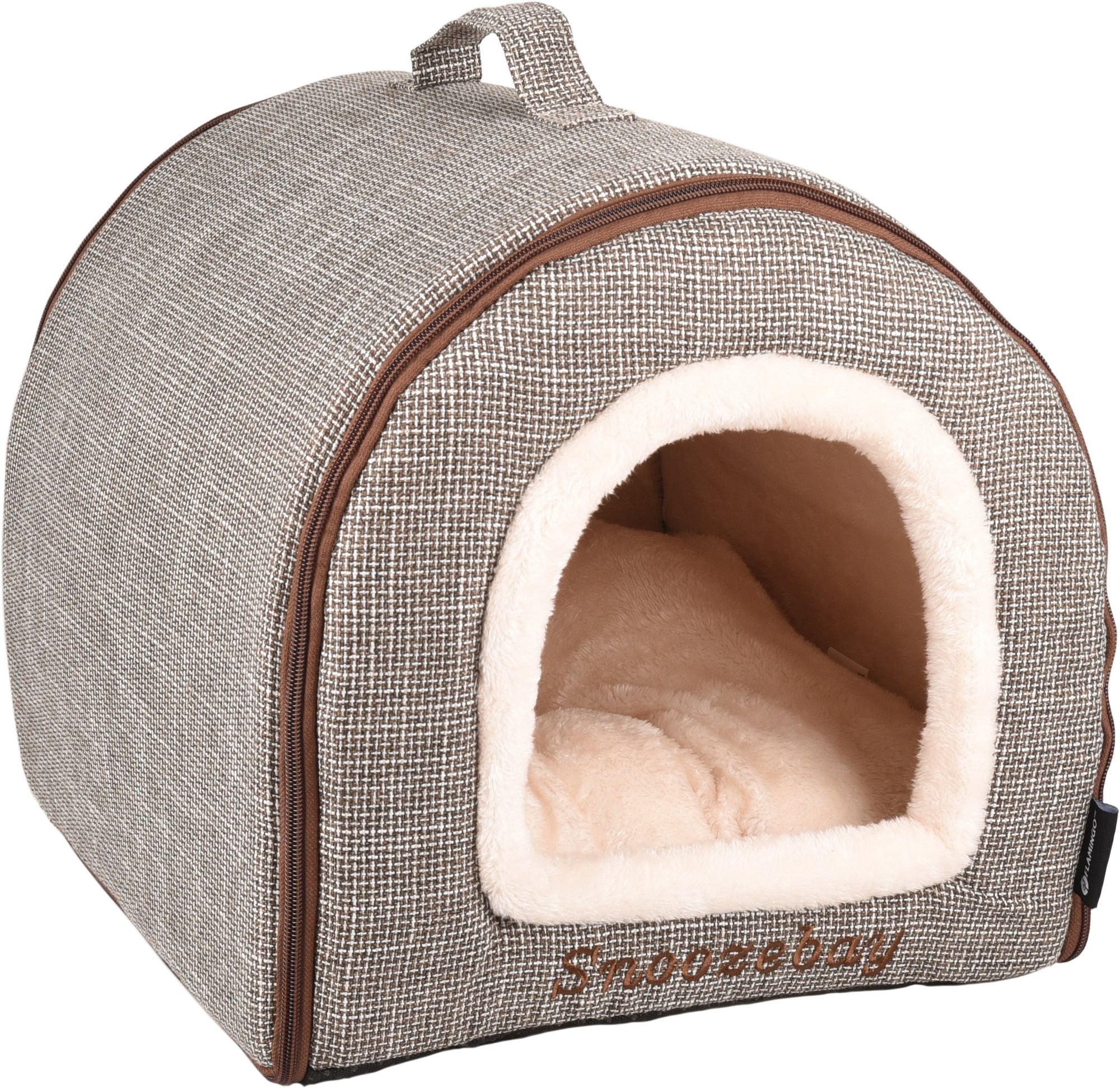 So Snoozebay doprajete svojej mačke pohodlné miestečko na spanie. Vankúš je úžasne mäkký vďaka svojej polyesterovej výplni, ktorá sa dá vybrať a prať.Domček má praktickú rukoväť a vďaka zipsu sa dá spredu úplne otvoriť. Skrátka ideálne miestečko na zdriemnutie!