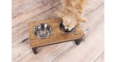 Štýlový stojan s 2 nerezovými miskami, kombinácia kov/mangové drevo. Výška 14,5 cm. Celý popis