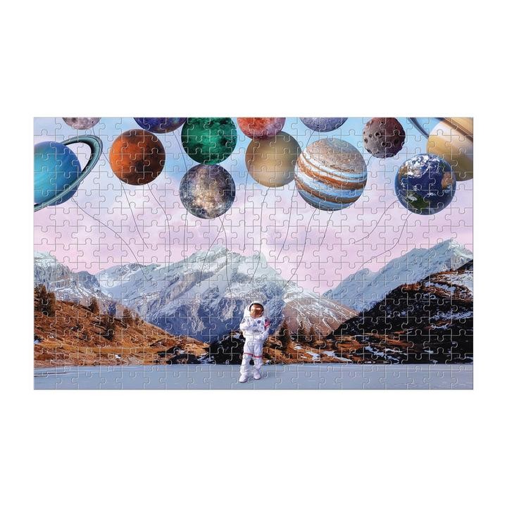 Na tomto 300 dílném jedinečném puzzle sledujte, jak balóny ve tvaru planet plují do vesmíru s touto surrealistickou ilustrací od Karen Cantu. Měnící se obrázek je umístěn také na přední straně krabice, takže můžete vidět proměnu i při skládání! Puzzle jsou baleny v pevných krabicích s matným povrchem.  Hlavní vlastnosti: Obsahuje 300 dílkůKouzelné měnící se puzzlePotištěno netoxickými inkoustyPrémiová kvalita puzzleJednotlivé dílky do sebe přesně pasujíRozvíjí logické myšlení a motoriku