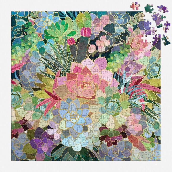 Fóliové puzzle ilustruje množství barev ve světě sukulentů, přičemž rostliny ožívají lesklými akcenty zlaté fólie. Puzzle je baleno v pevné krabici, pro opětovné použití a skladování. Ideální jako dárek. Autorem obrázku je Mia Charro. Puzzle jsou vyrobeny za použití významného podílu recyklovaného papíru a nabízí špičkový potisk nezávadnými barvami. Jsou opatřeny matnou povrchovou úpravou, která zajišťuje za všech okolností věrné podání detailů i barev. Jejich zadní strana je potažena hladkým, na dotek příjemným povrchem, díky němuž se při skladování rozloženého puzzle netvoří prach. Spolu s pečlivě zabalenými dílky naleznete v balení také letáček s návodným obrázkem, který zpravidla obsahuje další informace o tvůrcích a pozadí vzniku díla. Dodáváno v mimořádně pevné a poutavě zpracované kartonové krabičce vyrobené z recyklovaného kartonu a udržitelně získaných materiálů s certifikací FSC®. Hlavní vlastnosti: 500 precizně vyřezaných dílkůvyrobeno s použitím recyklovaných a udržitelně získaných materiálůpečlivě vybraný motiv od renomovaných tvůrců a umělcůpotisk a provedení nejvyšší kvalityobsahuje návodný obrázek
