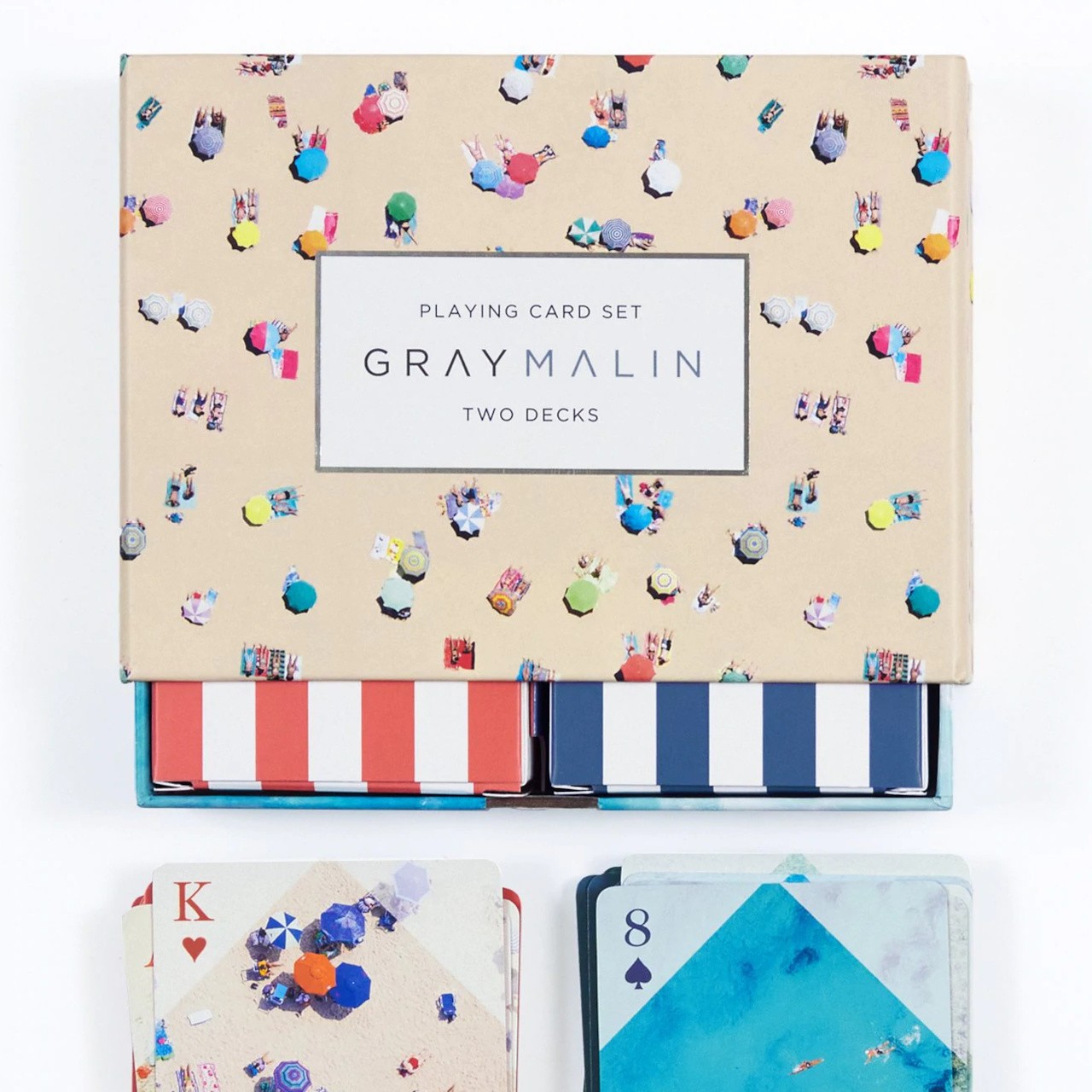 Sada originálních kanastových (žolíkových) hracích karet v luxusní kartonové krabičce. Karty i jejich obal zdobí umělecké, letecké snímky pláže, které do Vaší hry vnesou okouzlující atmosféru letní pohody a slunce. Hlavní vlastnosti:2 balíčky, 108 karet celkemumělecké fotografie, autor Gray Malinpraktické a luxusní balení