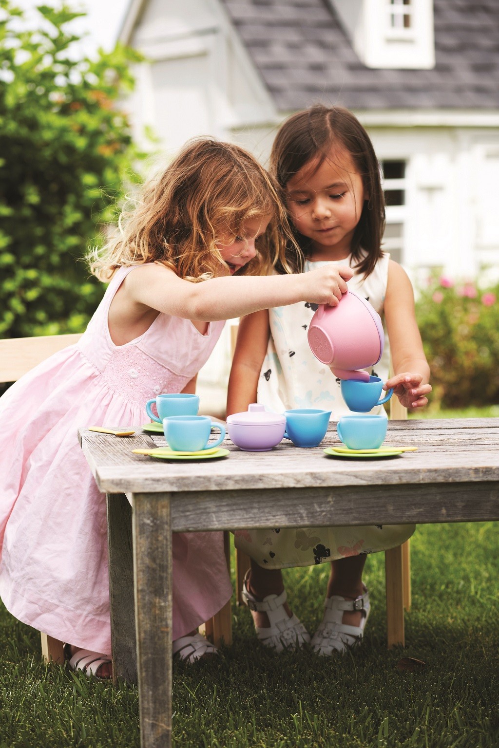 Čajový dýchánek pro čtyři. Dejte si zelený čaj s touto ekologickou hračkou od Green Toys. Budete pečovat nejen o duši, ale i o planetu. Čajová sada z pevného recyklovaného plastu se skládá ze 17 dílků, v balení najdete růžovou čajovou konvičku, cukřenku, 4 šálky, 4 podšálky a 4 lžičky. Hračka je vyrobená ze 100% recyklovaných materiálů, je netoxická, neobsahuje BPA, PVC, ftaláty, ani vnější nátěr. Vhodné pro mytí v myčce.Pokud hledáte plastové hračky na písek nebo do vody a zároveň Vám velmi záleží na bezpečnosti Vašich dětí, podívejte se na výrobky americké značky Green Toys. Vyrábí ekologické hračky, které jsou populární nejen v USA, firma se svými výrobky sklízí neuvěřitelné úspěchy po celém světě. Green Toys, to je především odpovědná výroba hraček z recyklovaného plastu láhví od mléka. Hlavní vlastnosti: bezpečný materiál bez obsahu BPA, PVC, ftalátůskládá se ze 17 částívyrobeno ze 100% recyklovaného plastu v USAvhodné do myčky