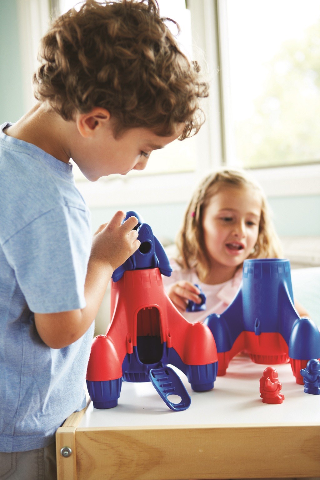Pokud hledáte plastové hračky na písek nebo do vody a při tom vám velmi záleží na bezpečnosti vašich dětí, nabízíme vám americkou značku ekologických hraček Green toys, která je populární nejen v Americe, ale se svými výrobky sklízí neuvěřitelné úspěchy po celém světě. Green toys, to je především odpovědná výroba hraček z recyklovaného plastu láhví od mléka. Start za 3-2-1 teď...Green Toys Rocket vyráží do další ekologické mise do hlubokého vesmíru! Raketa má odnímatelný kokpit a dva astronauty, kteří mají skafandry, helmy a batohy se dvěma láhvemi kyslíku. Má také velké vstupní dveře, které se vyklápějí dolů a slouží jako schodiště. Hlavní vlastnosti: bezpečný materiál pro děti, který neobsahuje PVC, bisfenol ani ftalátyvyroben z recyklovaného plastu láhví od mlékapevný a hladký materiáloriginální designobal je 100% ekologický a recyklovatelný