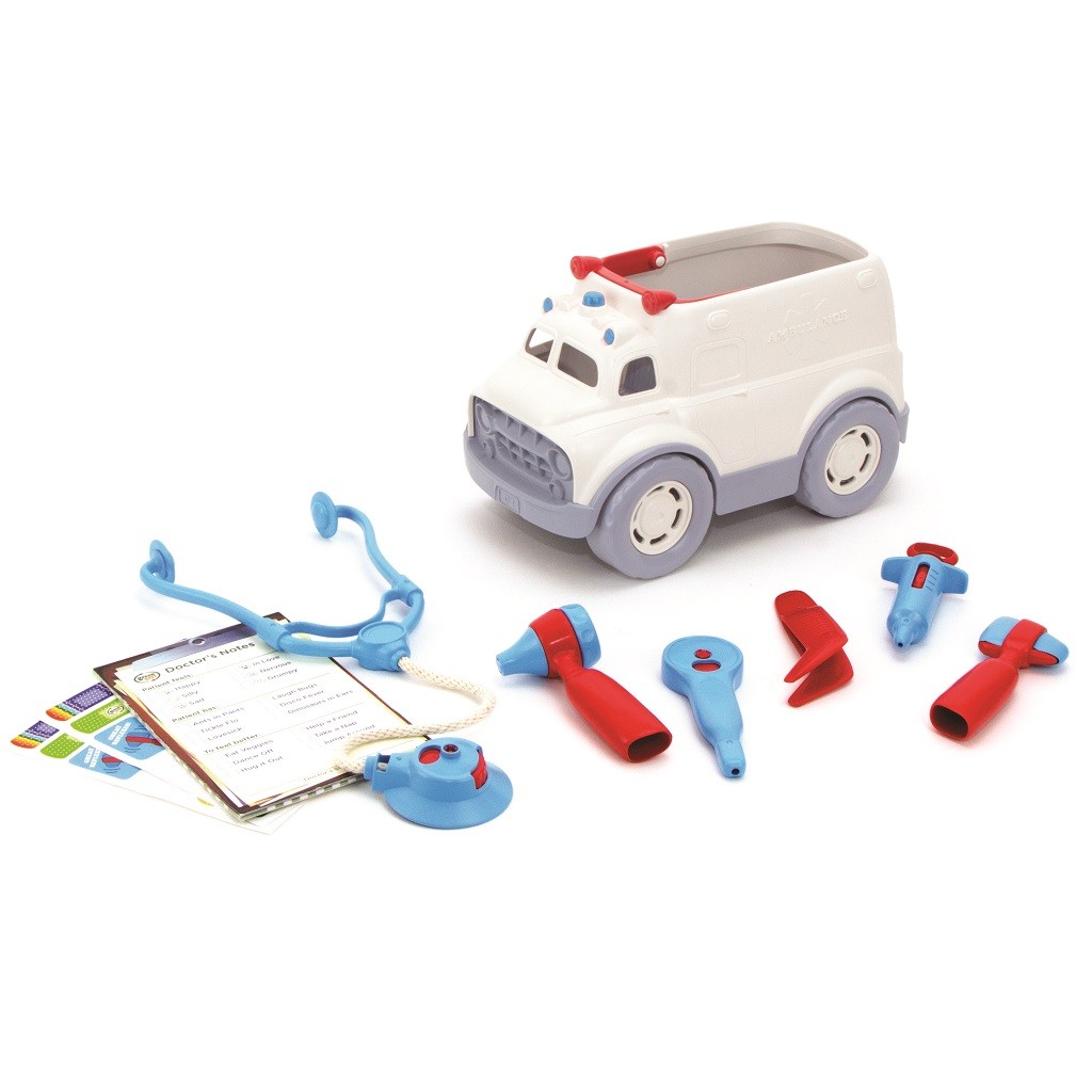 Tato krásná sada sanitky a lékařského vybavení od Green Toys má vše, co mladí lékaři potřebují. S touto hračkou jednoduše vyléčí všechny nemocné medvídky a panenky! Vyrobeno v USA ze 100% recyklovaného plastu, tato hračka je ideální nejen pro lidi, kteří se zajímají o ekologii. Dostaňte se k pacientům rychlou záchrankou a ošetřete je za pomocí šesti nástrojů, nezapomeňte ani na kartu pacienta, do které si můžete napsat diagnózu. Tato hračka děti podpoří v kreativní a představivé hře na role, pomůže jim porozumět postupu u lékaře, což se bude hodit při vlastních návštěvách. Také rozvíjí sociální a jazykové dovednosti, děti budou mluvit se svými pacienty o jejich zdraví. Naučí starat o druhé a rozvinou svou empatii. Hračka je bezpečná, netoxická, neobsahuje BPA, PVC, ftaláty, ani vnější nátěr.Pokud hledáte plastové hračky na písek nebo do vody a zároveň Vám velmi záleží na bezpečnosti Vašich dětí, podívejte se na výrobky americké značky Green Toys. Vyrábí ekologické hračky, které jsou populární nejen v USA, firma se svými výrobky sklízí neuvěřitelné úspěchy po celém světě. Green Toys, to je především odpovědná výroba hraček z recyklovaného plastu láhví od mléka. Hlavní vlastnosti: vybavení lékaře a sanitkakarta pacienta, stetoskop, teploměr, otoskop a dalšívyrobeno ze 100% recyklovaného plastuneobsahuje PVC, bisfenol ani ftaláty