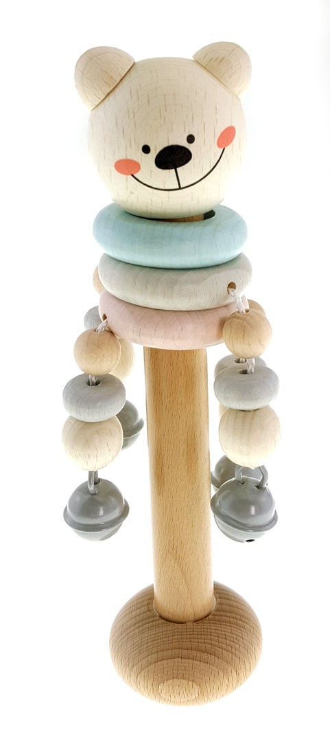 Vysoce kvalitní dřevěná hračka stimuluje představivost a zaujme pastelovými barvami. Hravou formou trénuje jemnou motoriku dítěte. Chcete-li si ji užít po dlouhou dobu, vyvarujte se nadměrného působení vody, čistěte hračku pouze vlhkým hadříkem. Chrastítko nevyvařujte, nedávejte do sterilizátoru ani nepoužívejte jiné sterilizační metody. Hlavní vlastnosti: rozvíjí motorické dovednostivyrobeno eticky ze dřeva z ekologicky obhospodařovaných lesůpoužity ekologické a odolné barvy