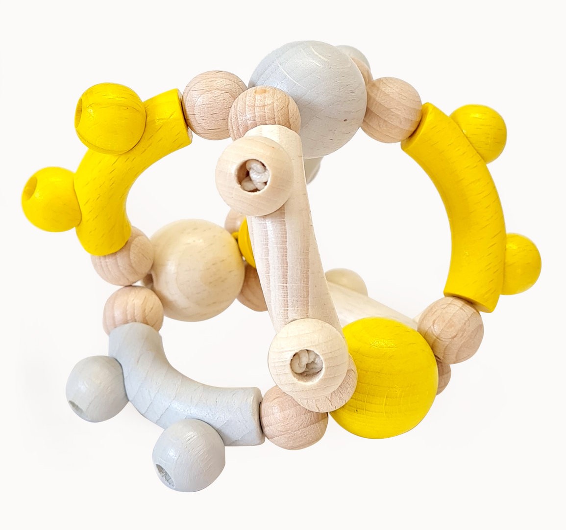 Vysoce kvalitní dřevěná hračka stimuluje představivost a zaujme pestrými barvami a rolničkou. Hravou formou trénuje jemnou motoriku dítěte. Chcete-li si ji užít po dlouhou dobu, vyvarujte se nadměrného působení vody, čistěte hračku pouze vlhkým hadříkem. Chrastítko nevařte, nedávejte do sterilizátoru ani nepoužívejte jiné sterilizační metody. Hlavní vlastnosti: vyrobeno eticky ze dřeva z ekologicky obhospodařovaných lesůpoužity ekologické a odolné barvy