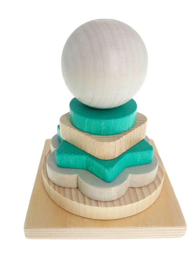 Perfektní skládací hra s 5 tvary a koulí. Tvary díky svému vzhledu dokonale padnou do dětské ručičky a lze je snadno uchopit. Věž naučí třídění podle velikosti a barvy, podporuje koordinaci a jemné motorické dovednosti malých stavitelů. Hlavní vlastnosti: dokonale sladěné barvy vypadají harmonickydřevěná stohovací věž je extrémně odolná a robustnívyrobeno v Německu