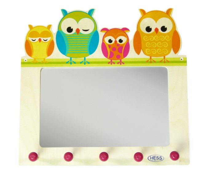Poutavý barevný věšák s motivem přátelských soviček do dětského pokoje, či chodby. Pětice háčků poskytuje široký prostor k zavěšení oděvu. Zrcadlo je vyrobeno z nerozbitného plexiskla. Hlavní vlastnosti: vyrobeno eticky ze dřeva z ekologicky obhospodařovaných lesůpoužity ekologické barvy