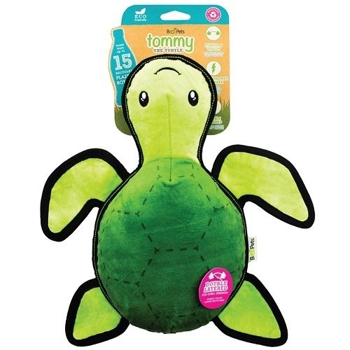 Hračka pre psa Beco Rough and Tough - Korytnačka Tommy je vyrobená z recyklovaných plastových fliaš a má interaktívny squeeker - piskátko, ktoré je recyklovateľné. Tommy je dvojito prešitý a dvojvrstvový, s extra hrubou čiernou podšívkou, vďaka čomu je pevný a odolný. Či má váš pes rád zápasenie, alebo maznanie, táto hračka ho určite poteší.