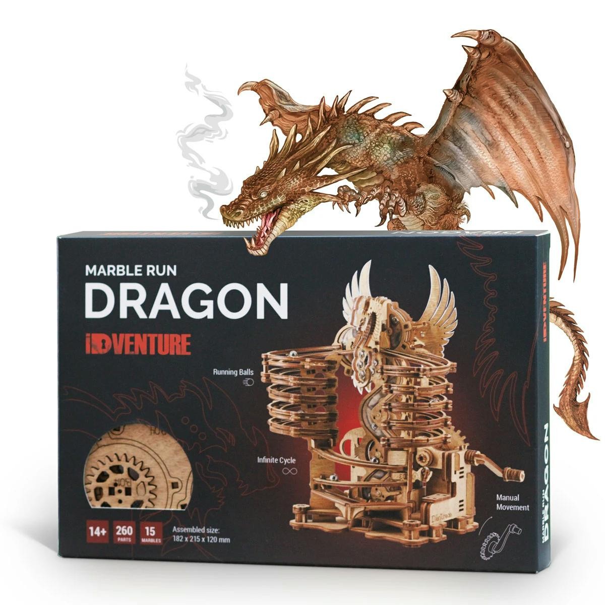 Hlavní vlastnosti: vzrušující projekt - IDventure Kuličková dráhradrak je dřevěná stavebnice, kterou můžete použít k sestavení vlastní kuličkové dráhy. Unikněte stresu každodenního života a zlepšujte svou koncentraci. Doba výstavby je cca 6 hodin.perfektní jako dárek - Jakmile úspěšně sestavíte kuličkovou dráhu, získáte fascinující mechanickou konstrukci a úžasné kuličkové bludiště v jednom. Sada je také perfektní jako tip na dárek pro fandy a milovníky puzzle.bez nářadí a lepidla - Dopřejte si čistou rukodělnou zábavu! 3D sada je sestavena bez nářadí a lepidla, takže můžete začít hned s přiloženými součástkami a podrobnými pokyny.úžasné detaily - Kuličky jsou automaticky přepravovány nahoru a lze je přepnout do dvou cest pomocí přepínače. Ruční klika jej uvádí do pohybu.vyrobenu z udržitelného dřeva - Všechny komponenty jsou přesně řezány laserem a vyrobeny z udržitelného vysoce kvalitního březového dřeva. Sada obsahuje 260 součástek a 15 kovových kuliček. Rozměr sestavy je 18,2 x 21,5 x 12 cm.