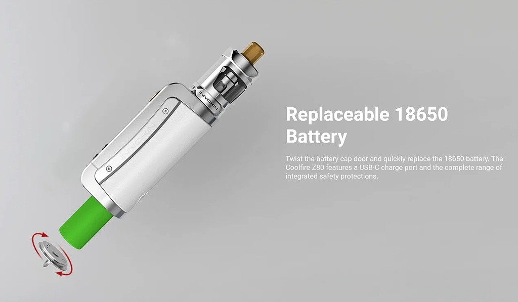 Prvotřídní elektronický Grip v kombinaci s inovovaným Clearomizérem Zenith II. Na baterii typu 18650, Výstupní výkon: 6 - 80 W ; 20 - 100 Hz, Výstupní režimy: FØ / POWER (Wattage, Voltage), Podporovaný odpor: 0,1 - 3,5 ohm, Materiál: zinková slitina + nerezová ocel, Dobíjení: USB-C port (5V / 1,7A), Závit: 510. Objem clearomizéru: 5,5 ml, který je hvodný jak pro MTL, tak i DL styl vapování. Výrobce Innokin.