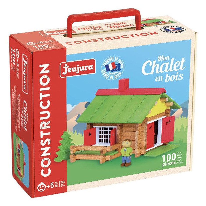 Dřevěná stavebnice inspirována alpskými chaletami potěší každého malého stavitele a stane se ozdobou dětského pokoje. Stavebnice Jeujura Constructions mají dlouhou tradici a patří mezi klasické francouzské hračky. Nabízí série tématicky věnované chaletám, domkům a farmám, ale také divokému západu a středověku. Dají se mezi sebou volně kombinovat a k řadě z nich je také nabízeno příslušenství, figurky a vozidla. Jsou vyráběny ve Francii, z masivního bukového a borovicového dřeva francouzského původu. Dílky stavebnic jsou ošetřeny výhradně za použití barev a laků na bázi vody. Každá sada je balena v praktickém lepenkovém kufříku potištěném rostlinnými inkousty a součástí balení je snadno pochopitelný návod.   Hlavní vlastnosti:100 dílků z masivního dřeva a podložkapraktické balenívyrobeno ve Francii