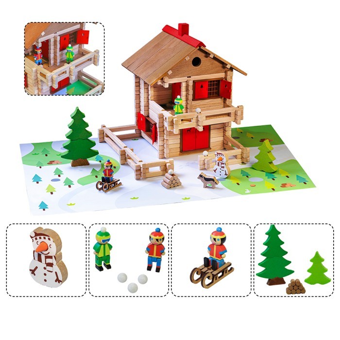 Přemýšlíte nad alpskou chatou s velkým balkonem, kde si můžete vychutnat čerstvý horský vzduch? Co takové sáňkování a koulování? S touto chaloupkou si užijete chvíle plné vloček a sněhuláků! Stavebnice Jeujura Constructions mají dlouhou tradici a patří mezi klasické francouzské hračky. Nabízí série tématicky věnované chaletám, domkům a farmám, ale také divokému západu a středověku. Dají se mezi sebou volně kombinovat a k řadě z nich je také nabízeno příslušenství, figurky a vozidla. Jsou vyráběny ve Francii, z masivního bukového a borovicového dřeva francouzského původu. Dílky jsou ošetřeny výhradně za použití barev a laků na bázi vody. Každá sada je balena v praktickém lepenkovém kufříku potištěném rostlinnými inkousty a součástí balení je snadno pochopitelný návod. Hlavní vlastnosti: 215 dílků z masivního dřeva a podložkapraktické balenívyrobeno ve Francii