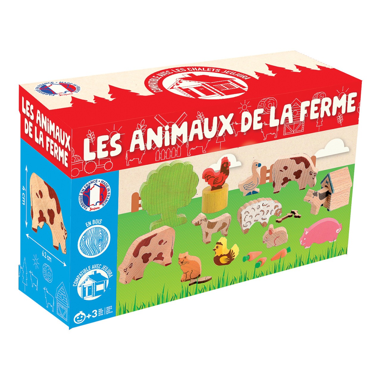 Sada hospodářských zvířat, včetně doplňků. Figurky ke stavebnicím Jeujura Constructions mohou sloužit i samostatně. Jsou nabízeny v tématicky zaměřených sériích, ale dají se různě kombinovat. Stejně jako stavebnice jsou vyráběny z masivního dřeva a jsou ošetřeny výhradně za použití barev a laků na bázi vody. Hlavní vlastnosti: obsahuje 11 zvířátek s doplňkyvyrobeno ve Francii