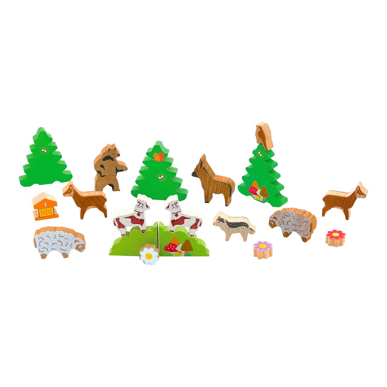 Sada zvířátek z hor, včetně doplňků. Figurky ke stavebnicím Jeujura Constructions mohou sloužit i samostatně. Jsou nabízeny v tématicky zaměřených sériích, ale dají se různě kombinovat. Stejně jako stavebnice jsou vyráběny z masivního dřeva a jsou ošetřeny výhradně za použití barev a laků na bázi vody. Hlavní vlastnosti: obsahuje 10 zvířátek s doplňkyvyrobeno ve Francii