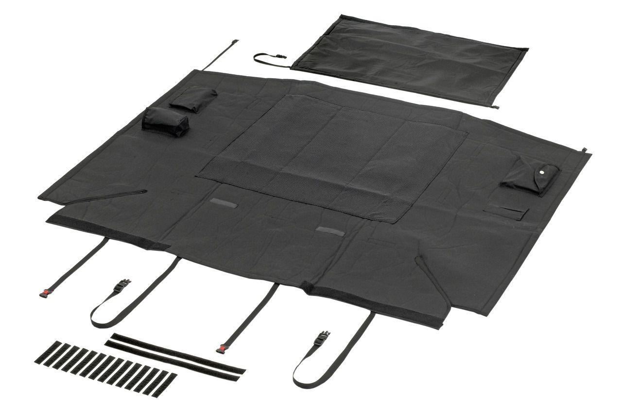 Špeciálna ochrana pre auto. Nepremokavý materiál z nylonu. Chráni pred špinou, vlkosťou a zvieracími chlpmi. Jednoduchá údržba - stačí utrieť handričkou. Dá sa zložiť, pokiaľ ho už nepotrebujete. Bráni pred poškrabaním auta, a je bariérou pred nekontrolovaným skákaním. Obsahuje špeciálne otváracie otvory pre pripojenie bezpečnostného pásu pre psa. Flexibilný prispôsobivý suchú zips. Špeciálny protišmykový povrch. Veľkosť 165x126 cm
