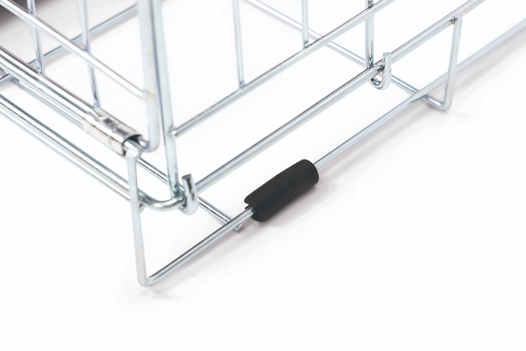 Strieborná drôtená klietka vhodná pre malé zvieratá. Ponúka bezpečné útočisko doma aj na cestách.