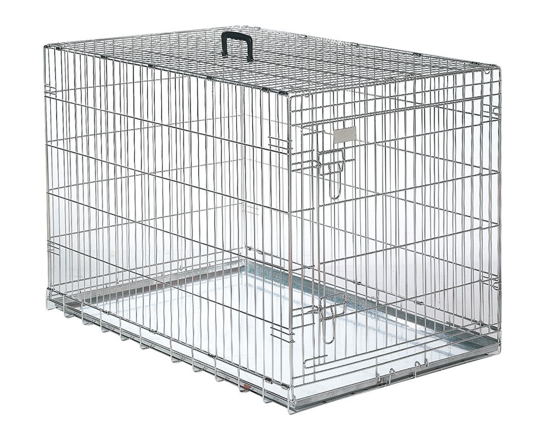 Strieborná drôtená klietka vhodná pre malé zvieratá. Ponúka bezpečné útočisko doma aj na cestách.