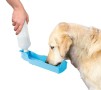 Prenosná fľaša na vodu je ideálna na cestovanie. Či už dlhšiu dobu šoférujete auto, kempujete alebo sa vydáte na pešiu turistiku, plastový dávkovač zaistí, že Váš pes bude vždy pohodlne zásobovaný vodou. Vďaka háčiku a ramennému popruhu možno dávkovač vody ľahko prepravovať.