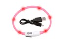 LED svetelný obojok ružový viditeľný až cca 500m. Nabíjacie batérie pomocou USB kábla - žiadne iné batérie nie sú potrebné - vodeodolný - blikajúce svetlo alebo kontinuálne svetlo. Veľkosť 20-35 cm