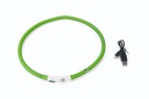 LED svetelný obojok zelený viditeľný až cca 500 m. Nabíjacie batérie pomocou USB kábla - žiadne iné batérie nie sú potrebné - vodeodolný - blikajúce svetlo alebo kontinuálne svetlo. Veľkosť 20-70 cm.