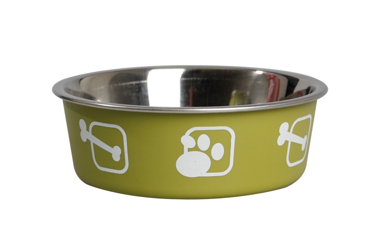 Praktická miska s nerezovou vložkou, ktorá je krytá krásnym plastovým plášťom v zelenej farbe.Veľkosť 14cm 450ml.