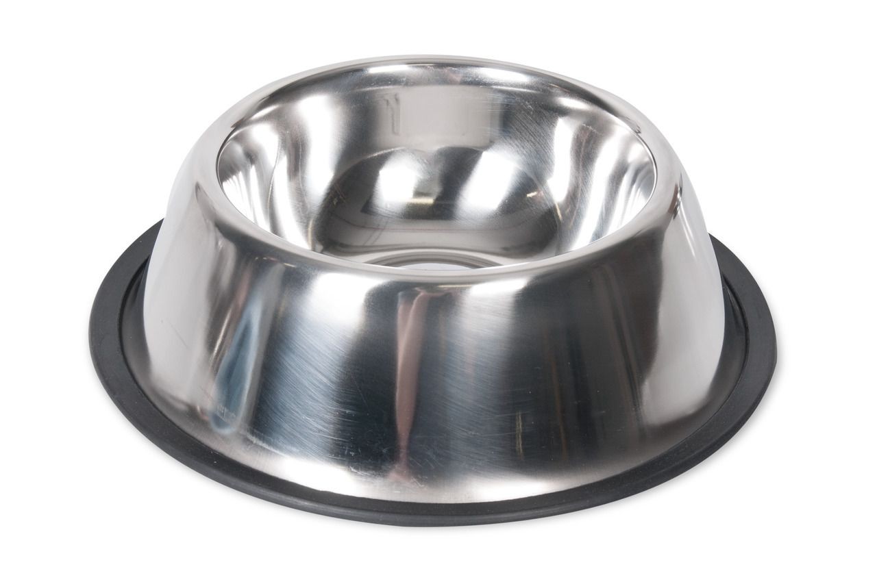 Praktická nerezová miska s gumovým okrajom, ktorá zabráni sklzu po podlahe. Veľkosť 25cm 2330ml