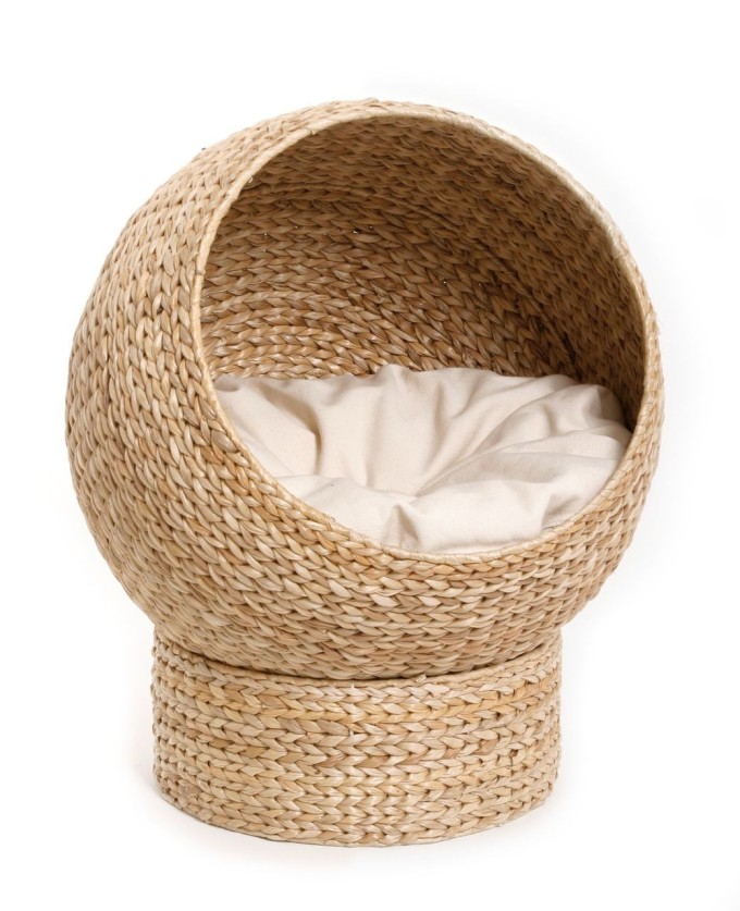 Krásny prútený pelech BANANA v béžovej farbe pre mačky veľkosti 47x47x6cm. Pelech je z prírodného materiálu, vďaka ktorému dobre vetrá a naviac je vyplnený poduškou pre pohodlnejší odpočinok.