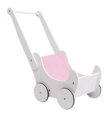 Dřevěný kočárek pro panenky růžový