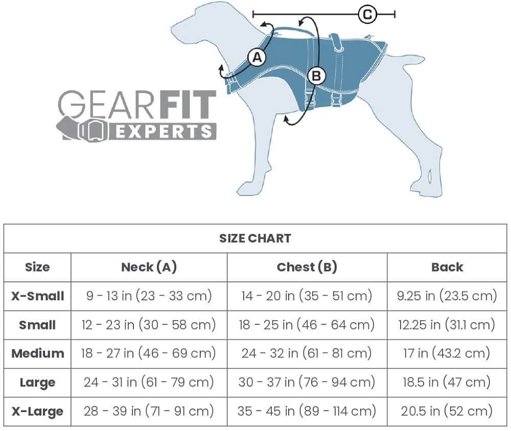 Veľkostná tabulka pre Surf N Turf Dog Life Jacket