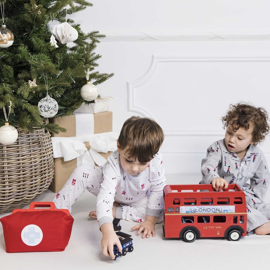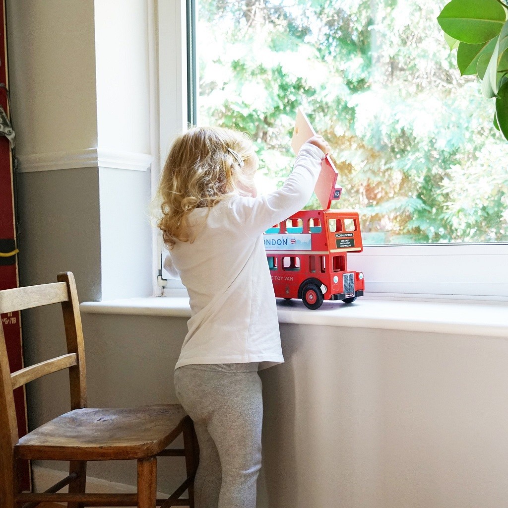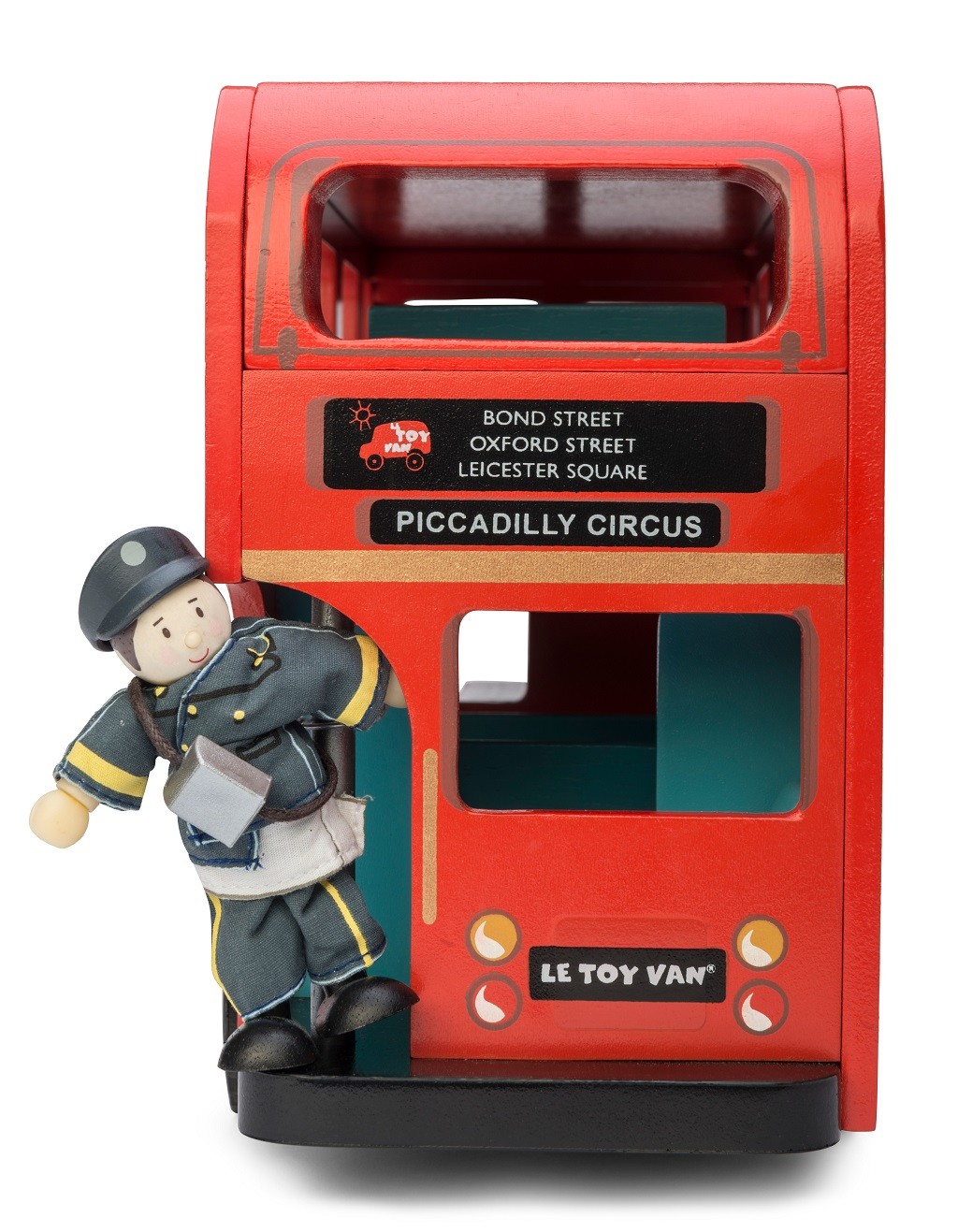 Poznávejte velkoměsto s tímto klasickým autobusem London. Tento dřevěný autobus je malovaný pestře červenou barvou, má reklamní banner a místo pro 11 pasažérů. Má také oddělitelnou střechu, otevíratelné první patro pro jednoduchý přístup. Také pogumovaná kolečka pro tichý chod. Autobus je prodáván bez řidiče a pasažérů. Velikost tak akorát pro figurky Budkins od Le Toy Van a jiné figurky do 10 cm. Produkt se může lišit v barevných detailech. Hlavní vlastnosti:ikonický dřevěný londýnský autobus s oddělitelnou střechouklasický vintage červený designvyrobeno z odolného a pevného udržitelného kaučukového dřeva – dlouhotrvající zábava i starost o naši planetumalováno netoxickými barvami, testováno dle nejpřísnějších standardů Ocenění hračky:Junior Design Best Online Fashion Retailer Award 2011Right Start Best Toy Gold Award 2011 Auta & stavby: Stavební a motorická kolekce Le Toy Van, která vyhrála mnoho ocenění. Přesněji prozatím přes 15 ocenění za představivá auta a stavební hračky. Podporují dětskou fantazii, jsou ideální k představivé hře, rozvíjí kreativitu a hravě zlepšují dětskou koordinaci ruka‑oko.