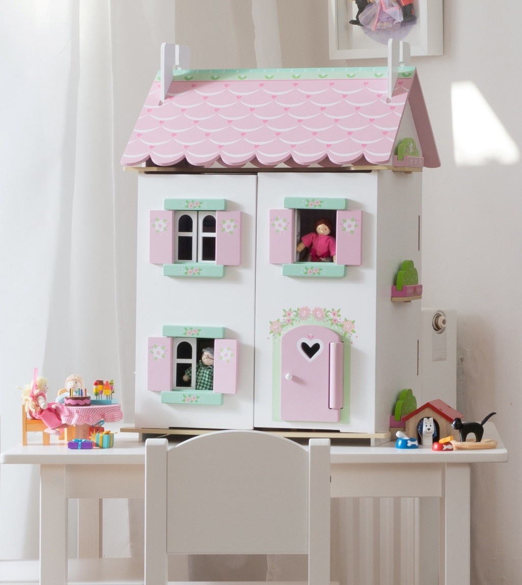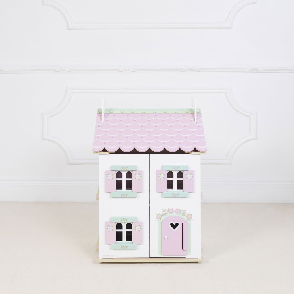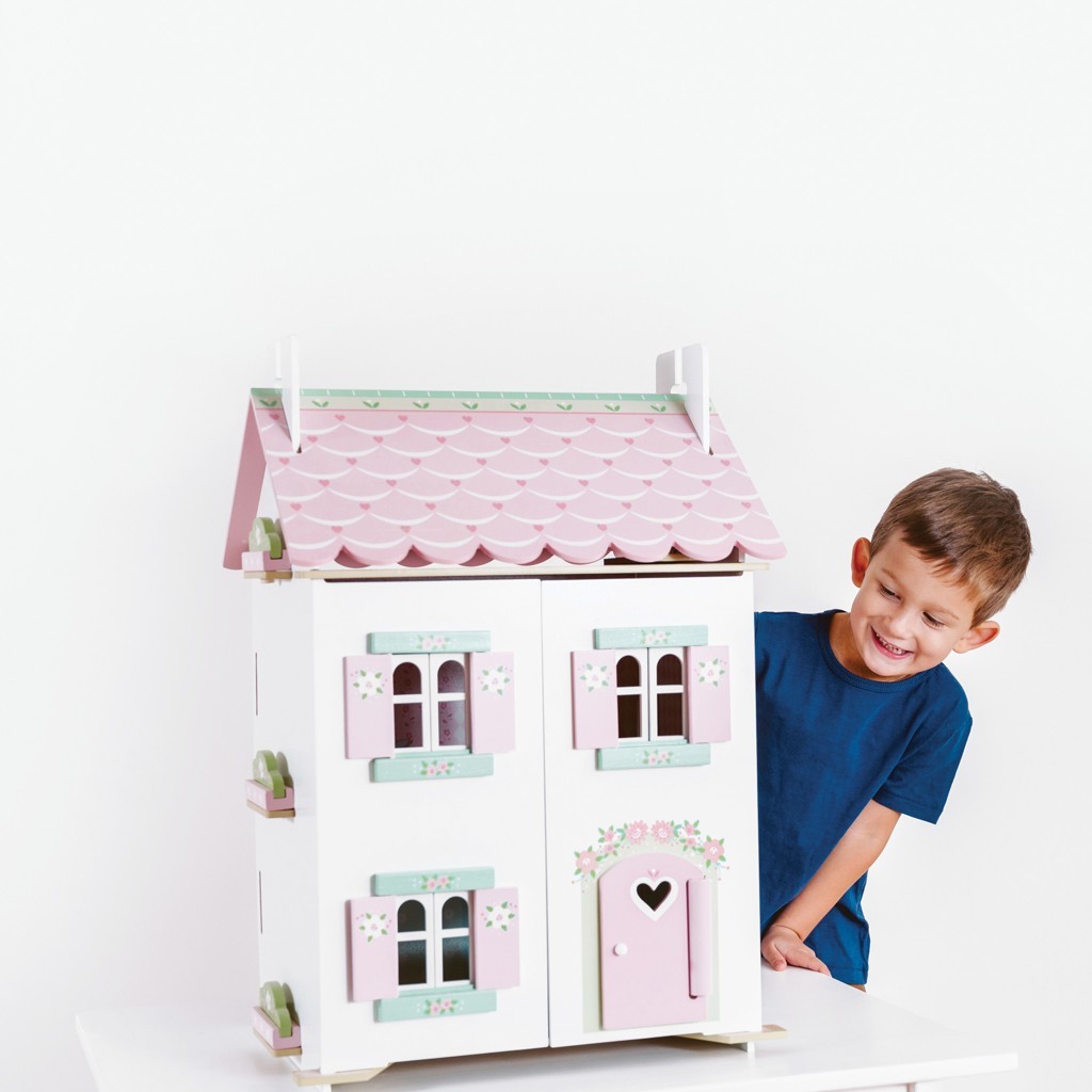 Třípatrový ručně domalovávaný domeček pro panenky v jemné pastelově růžové a bílé barvě s zářivou střechou posypanou třpytkami s 37 ks nábytku je vyzdoben krásnými srdíčky a květinovými motivy s plně otevíracími a zavíracími okny a okenicemi pro realistickou hru. Přední část domečku se otevírá a odhaluje nádherný prostor ve dvou patrech, přičemž každý pokoj je zdobený pěknými barevnými vzory. Zvedněte odjímatelnou část střechy a objevíte podkroví, ideální jako herna nebo ložnice. Při hraní děti procvičují komunikační dovednosti, prohlubují sociální intrakce a využívají kreativitu. Domeček je určen pro panenky do velikosti 15 cm.Tento tradiční domeček pro panenky je nadčasový a opravdu oblíbený. Domečky Le Toy Van pro panenky jsou vytvářeny s láskou pro celoživotní kouzelnou hru. Používají udržitelné postupy, etiku a vyrábí krásné dřevěné hračky, které dnes i pro další generace inspirují a rozvíjí představivost. Hlavní vlastnosti: Pomáhá s rozvojem koordinace pohybů, sociálních dovedností a rozvoji řečiDvoupatrový domeček pro panenky vybaven 37 ks nábytkuPodporuje v dlouhodobé představivé hřeZlepšuje koordinaci v zábavném prostředíVyrobeno eticky z udržitelného dřevaDekorováno netoxickými barvami, testováno dle nejpřísnějších standardů Ocenění hračky:Loved By Children Best Wooden Toy Award 2015 Daisylane kolekce: Prestižní kolekce domečků pro panenky a doplňků firmy Le Toy Van. Před více než 25 lety zakladatel Georges navrhl svůj úplně první domeček pro panenky, stavební kámen této firmy. Vyrobeno eticky z udržitelných materiálů, dřevěné domečky pro panenky Daisylane jsou jedinečné a nebudou dětskou představivost držet zpátky. Rodinné dědictví, opravdová investice do hraní.