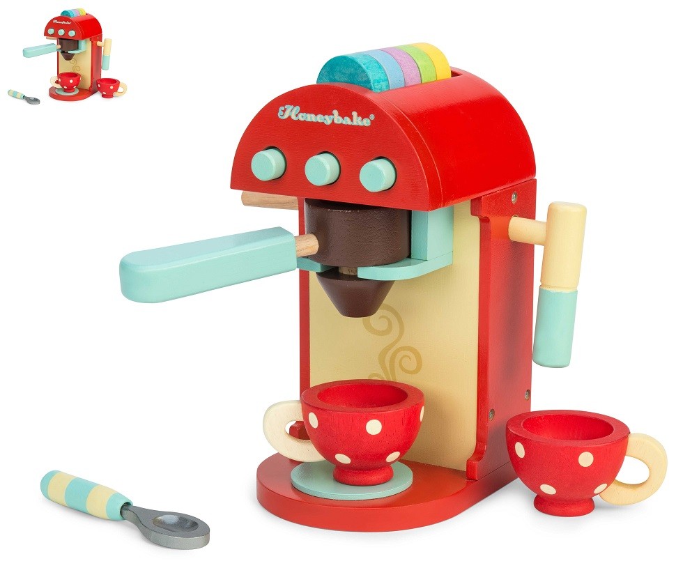 Čas na kávu! Vítejte v kavárně, tento realistický kávovar jistě bude hitem u všech malých nadšených baristů a baristek. Má mnoho detailů, které mohou děti prozkoumat – kávové kapsle, které mohou vložit do oddělitelné páky; napěňovač mléka, pěkný malovaný hrneček a lžička. Až si dohrajete, kávové kapsle můžete úhledně uložit do otvoru ve vrchní části kávovaru. Každý prvek této nádherné hračky je vyroben z udržitelného a odolného dřeva, dekorováno krásnými pestrými barvami, které jsou netoxické. Pro dlouhodobé, představivé hraní, které dbá na naši planetu. Posbírejte všechny dřevěné produkty Le Toy Van z této řady, včetně Konvice Dotty TV312 a Čajového setu Honeybake TV276. Hlavní vlastnosti: kávovar s hrnečkem, kapslemi a lžičkouoceněná hračkagenderově neutrální designbez použití plastu – vyrobeno z udržitelného FSC dřevatestováno dle nejpřísnějších standardůmalováno netoxickými barvami na bázi vodyinspiruje ke kreativní a představivé hře Ocenění hračky:Made For Mums Gold Award 2017Progressive Preschool Award Winner 2014 Honeybake kolekce: Hračky v této kolekci jsou vhodné k objevování, pomohou dětem s rozvojem představivosti, sociálních a verbálních dovedností a kognitivních funkcí. Tradiční design s moderními detaily děti jistě bude bavit. Honeybake je kolekce Le Toy Van, která vyhrála nejvíce ocenění, a to za design, kvalitu, bezpečnost a také za vzdělávací a herní hodnotu. Značka a certifikát FSC® (Forest Stewardship Council) zaručuje, že dřevo, ze kterého byl produkt vyroben, nebylo vytěženo nelegálně a pochází z lesů obhospodařovaných šetrným či přírodě blízkým způsobem, ve kterém jsou dodržovány přísné environmentální a sociální požadavky. Značka FSC® na výrobku znamená, že svým nákupem pomáháte chránit lesy a podporujete šetrné, odpovědné či přírodě blízké hospodaření, díky kterému jsou naše lesy stabilnější, zdravější, mají přirozenou druhovou skladbu a lépe odolávají negativním následkům klimatických změn.