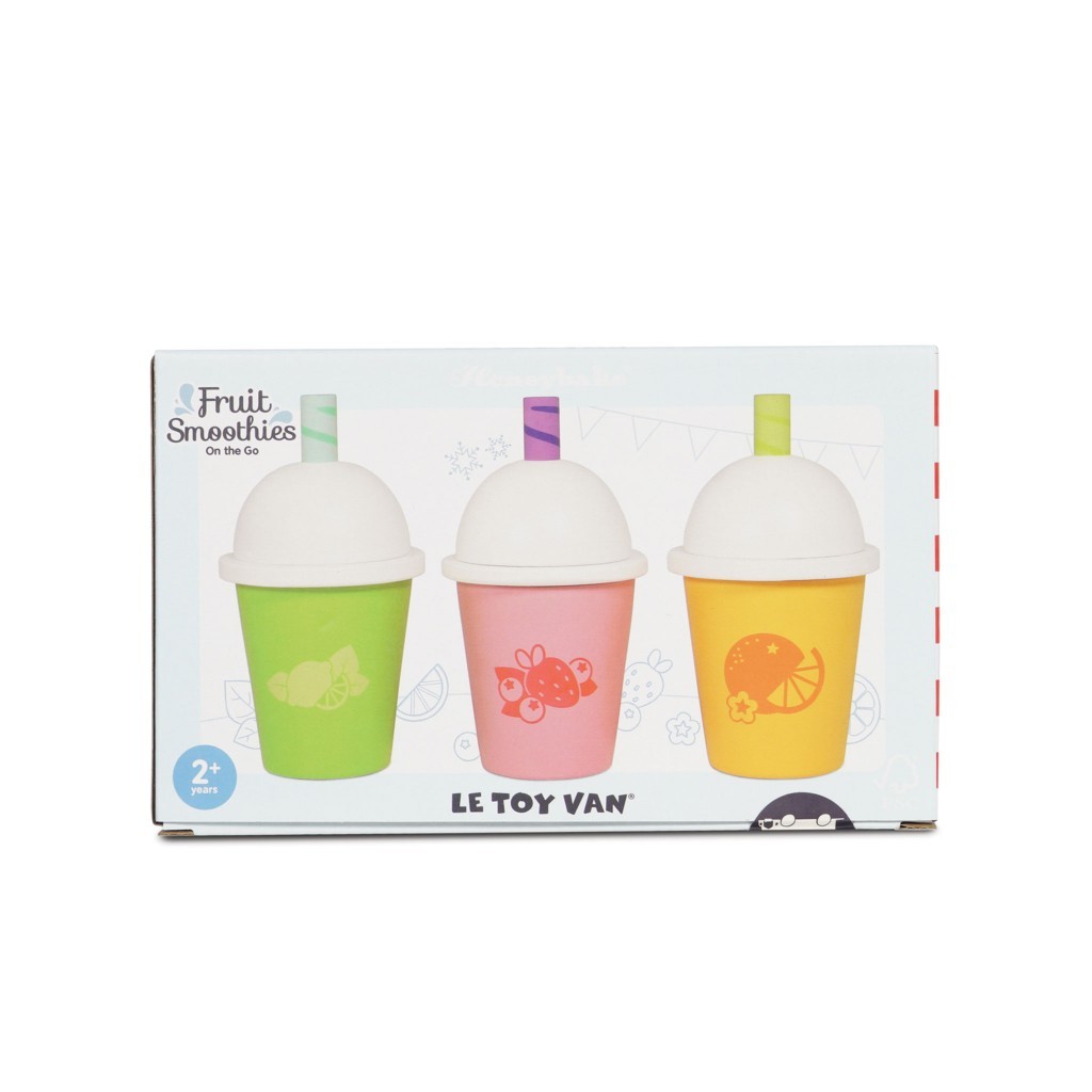 Chutné trio smoothies to-go, neboli s sebou. Tyto roztomilé ovocné koktejly jsou univerzální, budou se hodit do dětských kuchyněk i prodejních stánků, samozřejmě poslouží i samostatně. Paleta pestrých barev je na slámce doplněna o proužky, tato genderově neutrální hračka je vyrobena z pevného a udržitelného dřeva. Hodí se také k ostatním hračkám v tematice dětského tržního stánku a kuchyně, to vše pro bohatou hru plnou představivosti. Hračky s účelemVšechny hračky firmy Le Toy Van jsou vyrobeny s cílem – aby dlouho vydržely. Designovány s láskou zkušenými řemeslníky za použití etických praktik a udržitelných materiálů, které jsou laskavější k naší planetě. Hlavní vlastnosti: vyrobeno eticky z udržitelného FSC dřevatestováno dle nejpřísnějších standardůmalováno netoxickými barvami na bázi vodyinspiruje ke kreativní a představivé hřehračka pro hraní na role pomáhá s brzkým rozvojem dětí Honeybake kolekce: Hračky v této kolekci jsou vhodné k objevování, pomohou dětem s rozvojem představivosti, sociálních a verbálních dovedností a kognitivních funkcí. Tradiční design s moderními detaily děti jistě bude bavit. Honeybake je kolekce Le Toy Van, která vyhrála nejvíce ocenění, a to za design, kvalitu, bezpečnost a také za vzdělávací a herní hodnotu. Značka a certifikát FSC® (Forest Stewardship Council) zaručuje, že dřevo, ze kterého byl produkt vyroben, nebylo vytěženo nelegálně a pochází z lesů obhospodařovaných šetrným či přírodě blízkým způsobem, ve kterém jsou dodržovány přísné environmentální a sociální požadavky. Značka FSC® na výrobku znamená, že svým nákupem pomáháte chránit lesy a podporujete šetrné, odpovědné či přírodě blízké hospodaření, díky kterému jsou naše lesy stabilnější, zdravější, mají přirozenou druhovou skladbu a lépe odolávají negativním následkům klimatických změn.