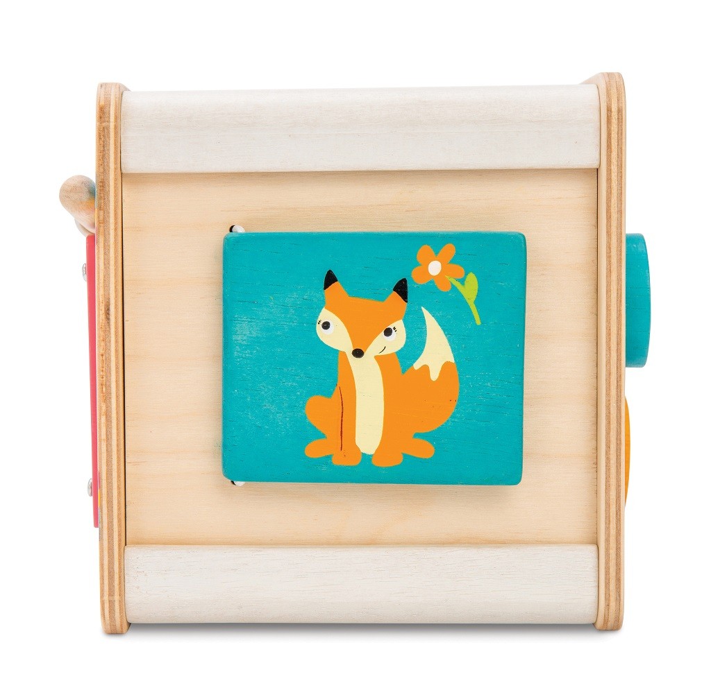 Dřevěná ručně domalovávaná motorická kostka s interaktivními prvky. Na každé straně je nová aktivita k prozkoumání podněcující smyslový zážitek, který stimuluje senzomotorické schopnosti. Batolata zde objeví zvířátkový labyrint, hlavolam, xylofón, zvířátkovou knížku, zábavná ozubená kolečka a kolečkovou duhovou hádanku. Výborné pro rozvoj motoriky a logických dovedností. Hlavní vlastnosti: Vhodné jako dárek pro nejmenšíPestrý a barevný design stimuluje představivost a pomáhá s poznáváním barevMotorická kostka pomáhá s rozvojem koordinace ruka-oko a sebejistotyVyrobeno z odolného a udržitelného kaučukového dřeva – dlouhotrvající zábava i starost o naši planetuMalováno netoxickými barvami, testováno dle nejpřísnějších standardů Petilou kolekceKolekce pro nemluvňata a batolata od Le Toy Van obsahuje hlavně hmatové hračky, které mají nejmenším posloužit také jako učební prostředky. Kolekce je inspirována přírodou kolem nás a je navržena tak, aby rozvíjela smysly dětí pomocí rozdílných zvuků, textur, tvarů a hmotností. Děti tak od malička zapojí všechny své smysly.