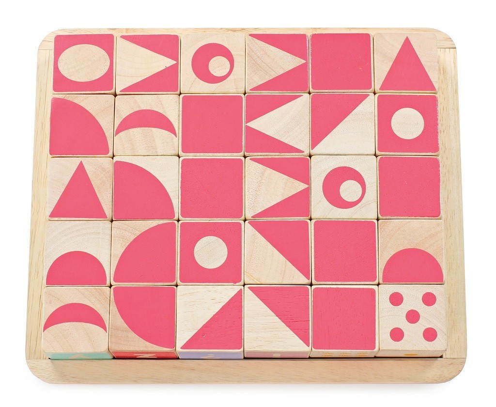 Rozměry: 27x23x4,3 cm Věk: 12m+ Materiál: vysoce kvalitní FSC dřevo z udržitelných a obnovitelných zdrojů Ručně domalováno ekologickými barvami Obsahuje 30 kostek a 1 základní desku Celý popis