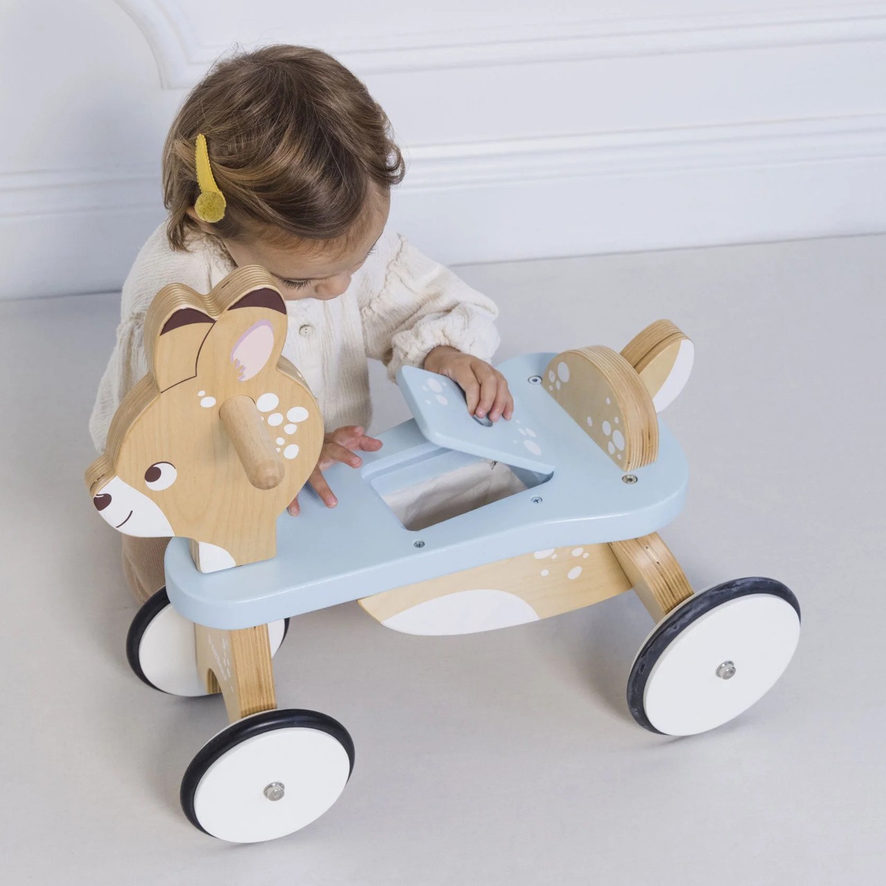 Rozměry: 55x47x30 cm Věk: 12m+ Materiál: vysoce kvalitní dřevo z udržitelných a obnovitelných zdrojů Ručně domalováno ekologickými barvami Odrážedlo je navrženo pro vnitřní použití Celý popis