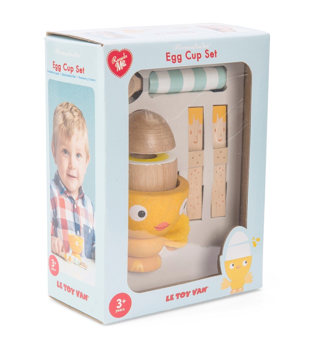 Snídaně je na stole! Tento roztomilý snídaňový set se skládá z 6 dílků, byl vyroben týmem talentovaných hračkářů za použití kaučukového dřeva, které je malováno netoxickými barvami na bázi vody. Děti si budou užívat hraní na role každým dnem. Ručně přišitá plstěná křídla krásně doplní kalíšek na vejce, který vypadá jako kuře. V balení dřevěné vejce s magnetem, dvě tyčinky z toustového chleba, malovaná dřevěná lžička. Oceněná a etická hračka děti pobídne k interaktivní a představivé hře. Podpoří je také v brzkém rozvoji, sociální interakci, rozvine jejich zručnost a jemnou motoriku. Hodí se k hračkám z řady Honeybake od Le Toy Van. Hračky s účelemVšechny hračky firmy Le Toy Van jsou vyrobeny s cílem – aby dlouho vydržely. Designovány s láskou zkušenými řemeslníky za použití etických praktik a udržitelných materiálů, které jsou laskavější k naší planetě. Hlavní vlastnosti: sada s 6 dílkyhračka vyhrála oceněnívyrobeno eticky z udržitelného FSC dřevatestováno dle nejpřísnějších standardůmalováno netoxickými barvami na bázi vodyinspiruje k představivé hře Honeybake kolekce: Hračky v této kolekci jsou vhodné k objevování, pomohou dětem s rozvojem představivosti, sociálních a verbálních dovedností a kognitivních funkcí. Tradiční design s moderními detaily děti jistě bude bavit. Honeybake je kolekce Le Toy Van, která vyhrála nejvíce ocenění, a to za design, kvalitu, bezpečnost a také za vzdělávací a herní hodnotu. Značka a certifikát FSC® (Forest Stewardship Council) zaručuje, že dřevo, ze kterého byl produkt vyroben, nebylo vytěženo nelegálně a pochází z lesů obhospodařovaných šetrným či přírodě blízkým způsobem, ve kterém jsou dodržovány přísné environmentální a sociální požadavky. Značka FSC® na výrobku znamená, že svým nákupem pomáháte chránit lesy a podporujete šetrné, odpovědné či přírodě blízké hospodaření, díky kterému jsou naše lesy stabilnější, zdravější, mají přirozenou druhovou skladbu a lépe odolávají negativním následkům klimatických změn.