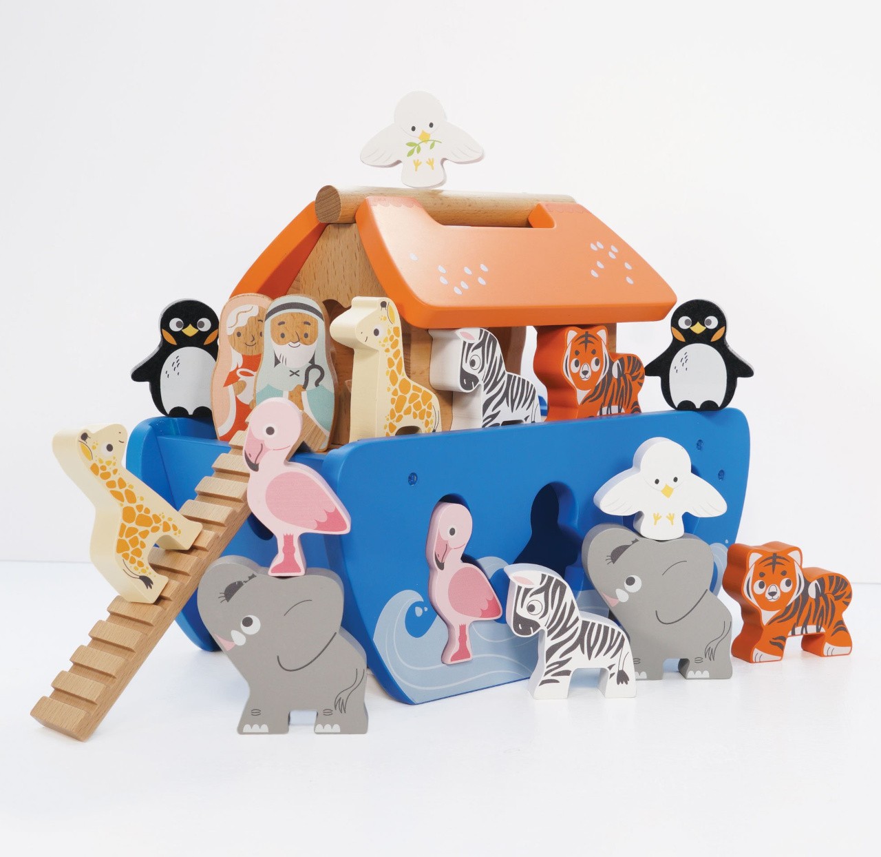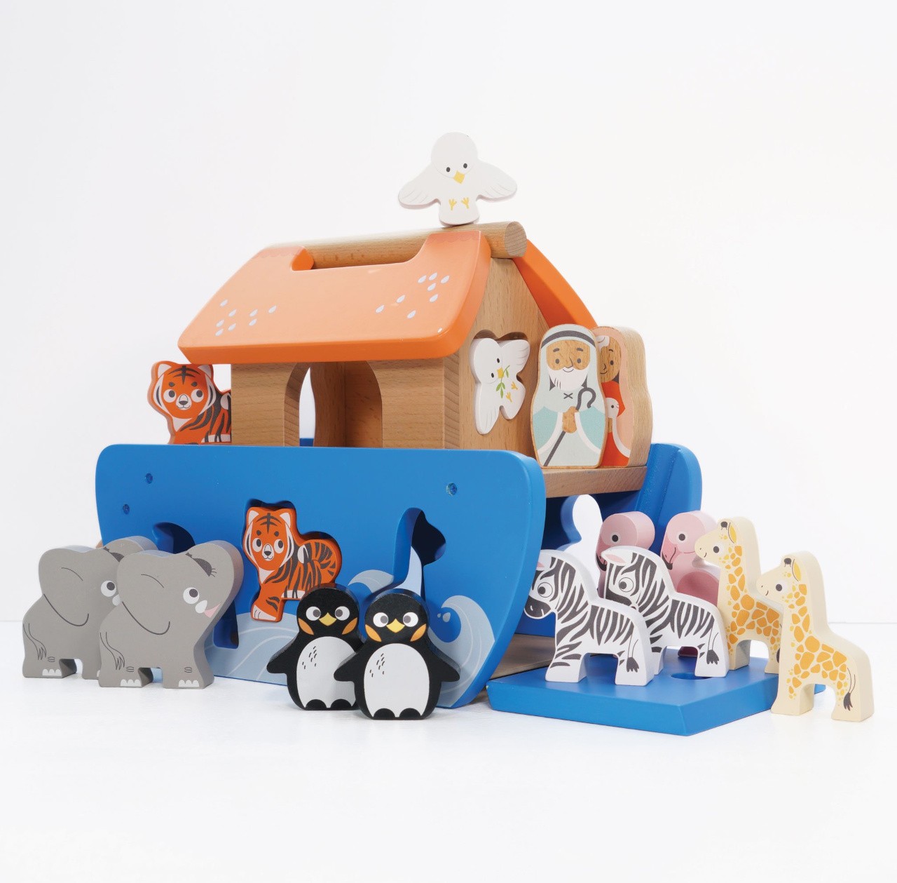 Edukativní zábava! Dřevěná vkládačka je krásně barevná, skrývá 7 párů zvířátek, Noeho a jeho ženu. S pomocí dřevěných přátel si batolata procvičí dovednosti senzorické, motorické i koordinační a to vkládáním dílků do odpovídajících otvorů. Chytrá hračka má také madlo, díky kterému ji můžete jednoduše přenášet. Na Noemovu archu vede žebřík, také odklopné dveře, zvířata se tak mohou jednoduše vylodit a nalodit. Vyrobeno z udržitelného dřeva, malováno netoxickými barvami na bázi vody. Hlavní vlastnosti: vkládačka v motivu Noemovy archyšestnáct dřevěných dílkůbarevný design stimuluje představivostpomáhá s rozpoznáváním tvarůzlepšuje zručnostodolná hračka bez obsahu plastu, z FSC dřevamalováno netoxickými barvami na bázi vody Kolekce balančních arch: Tato kolekce má mnoho krásných detailů, vdechne zvířátkům život. Je vhodná od 12 měsíců do 3 let, pomáhá s rozvojem různých dovedností, například hra na role, zručnost, kognitivní dovednosti. V této kolekci jsou hlavní tři faktory – vkládání tvarů, balancování zvířátek a představivá hra. Všechny archy jsou inspirovány Noem a jeho zvířátky, tak ať si děti hru velmi užijí! Značka a certifikát FSC® (Forest Stewardship Council) zaručuje, že dřevo, ze kterého byl produkt vyroben, nebylo vytěženo nelegálně a pochází z lesů obhospodařovaných šetrným či přírodě blízkým způsobem, ve kterém jsou dodržovány přísné environmentální a sociální požadavky. Značka FSC® na výrobku znamená, že svým nákupem pomáháte chránit lesy a podporujete šetrné, odpovědné či přírodě blízké hospodaření, díky kterému jsou naše lesy stabilnější, zdravější, mají přirozenou druhovou skladbu a lépe odolávají negativním následkům klimatických změn.