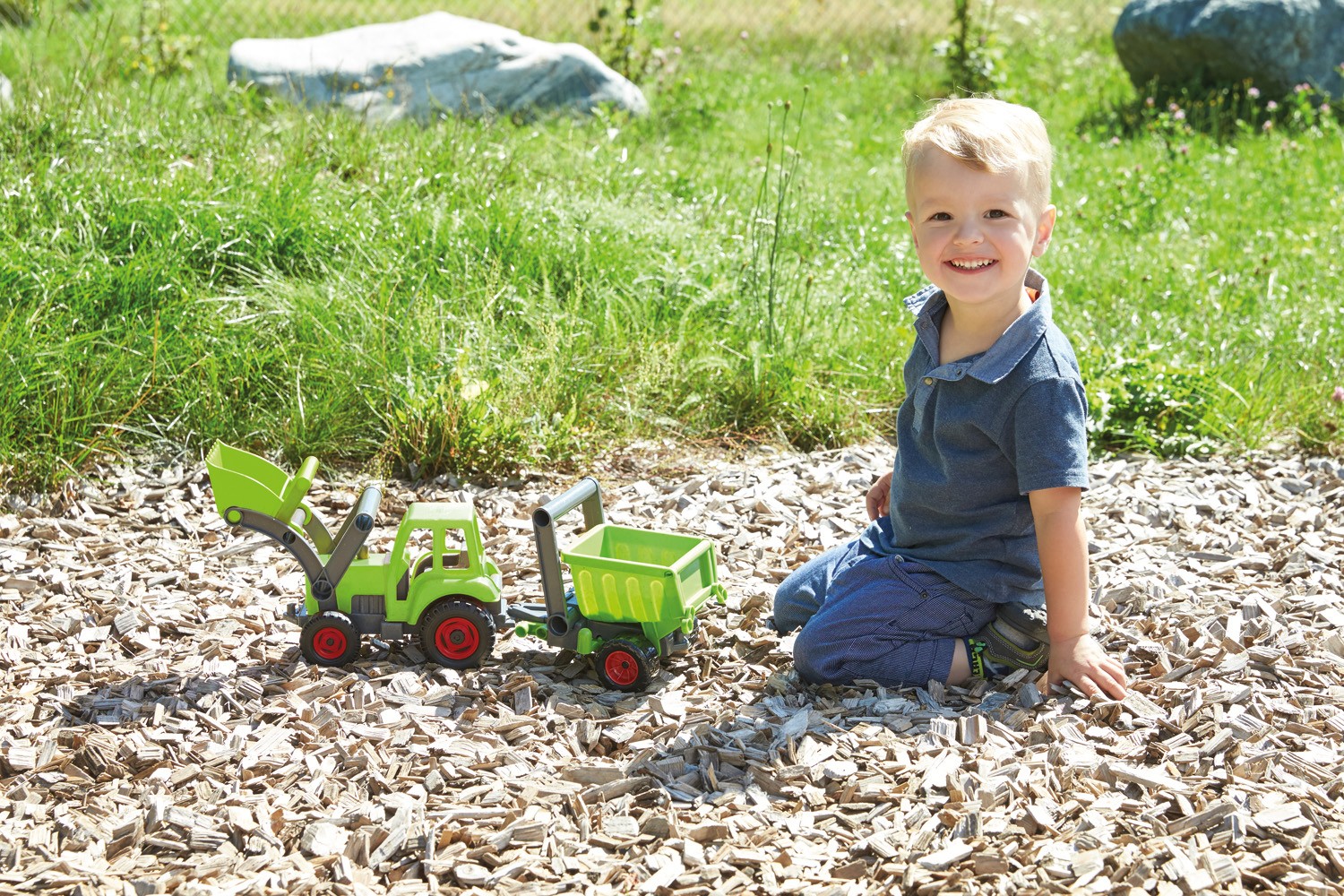 Aktivní traktor vyráběn ekologickou formou výroby za pomocí recyklovaných materiálů a příměsi dřeva. Je plně mechanicky funkční. Disponuje funkční mechanikou a odklopitelnou kabinou pro snadnou manipulaci (řidič není součástí balení).  Hlavní vlastnosti: funkční mechanikaodklápěcí kabinavyrobeno z recyklovaného plastu